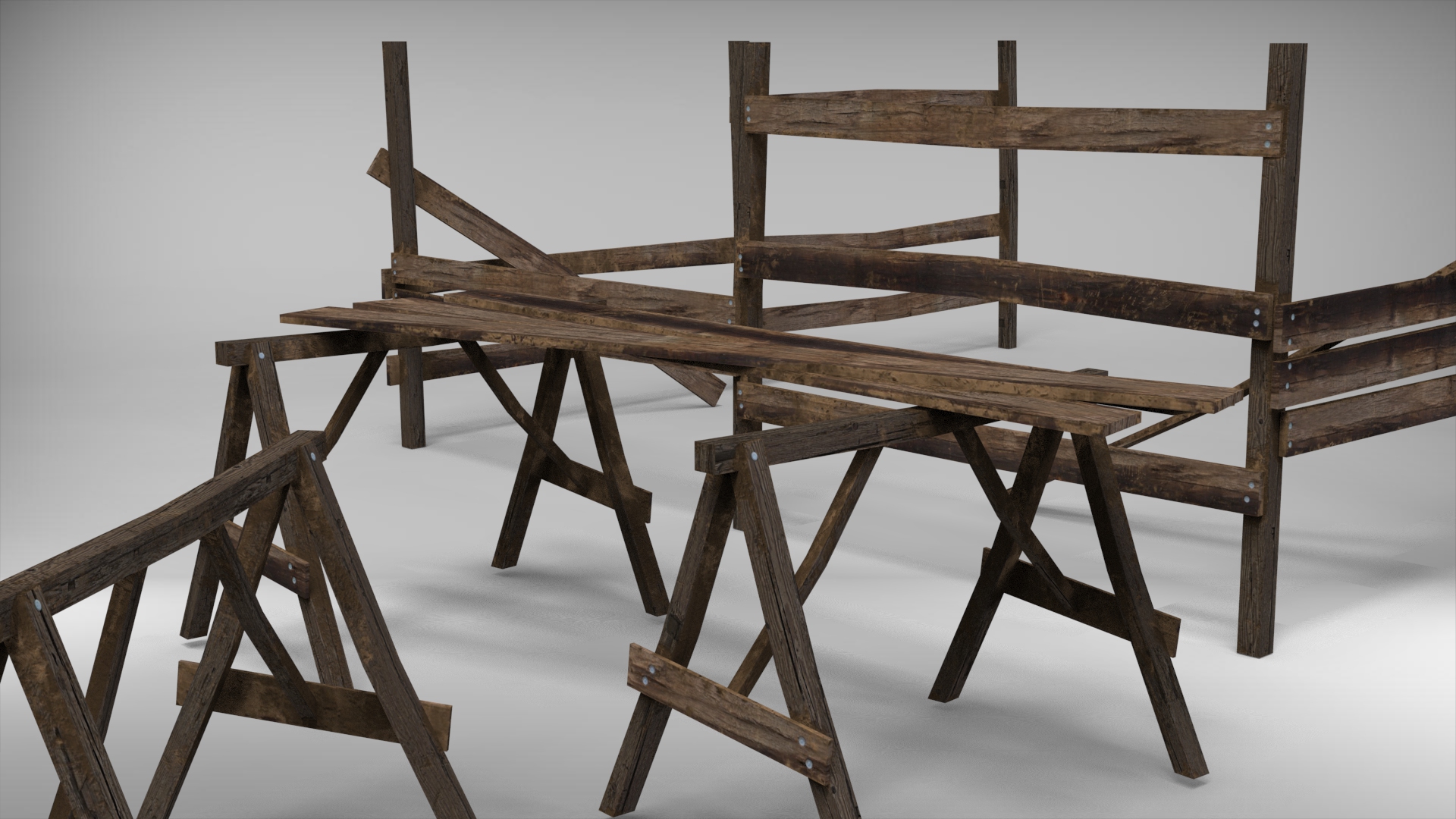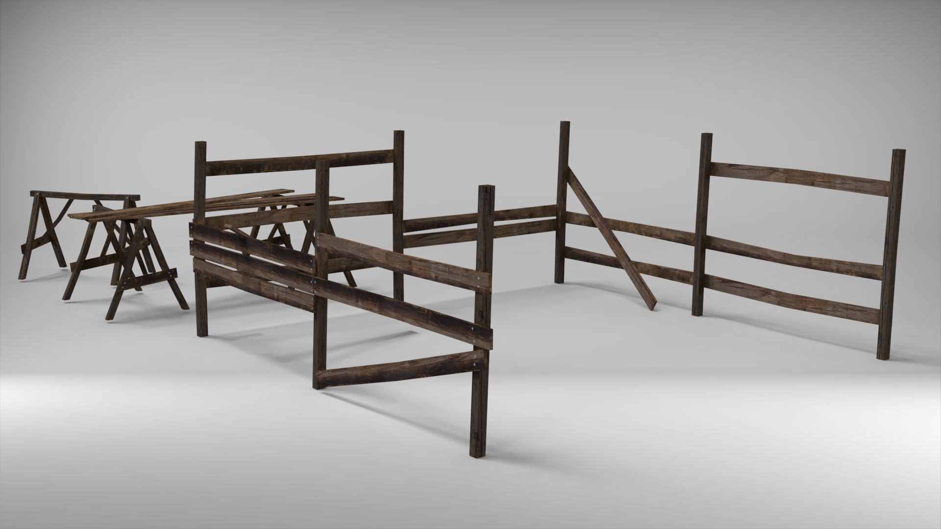 Cercado de madeira em construção em madeira + cavaletes.