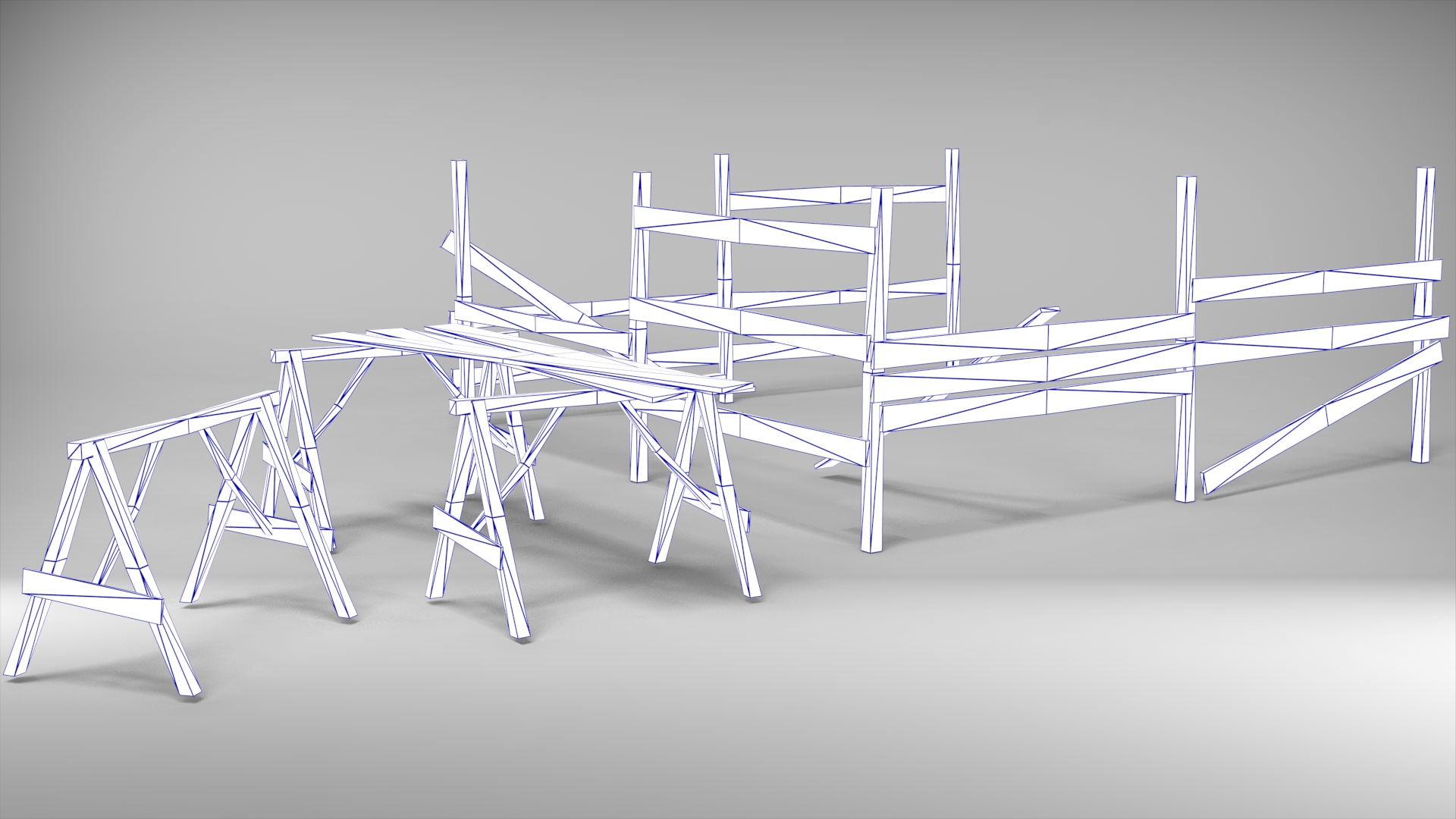Cercado de madeira em construção em madeira + cavaletes.